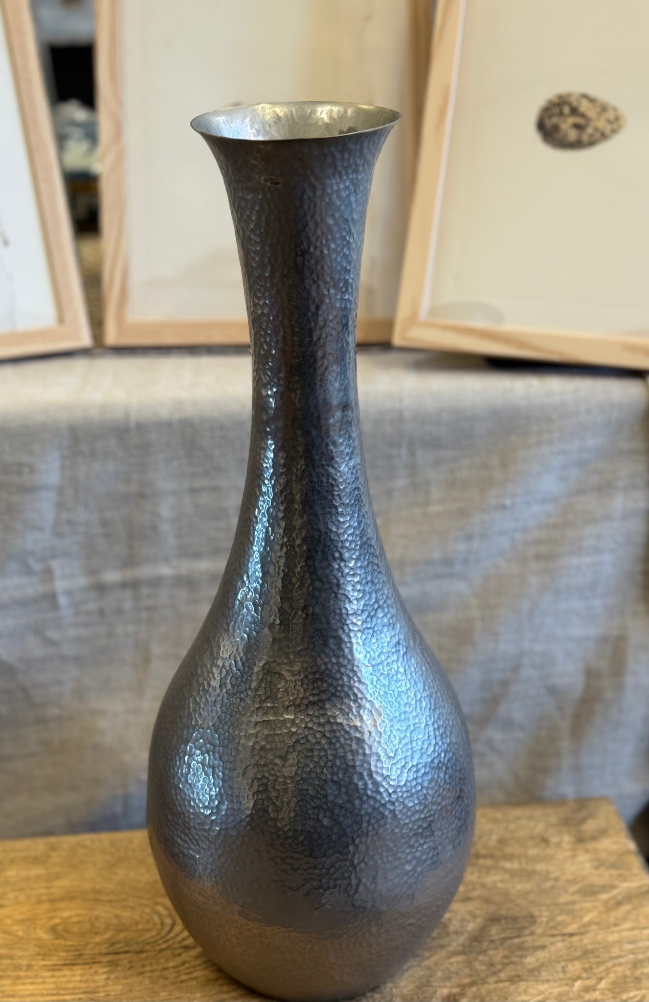 This metal vase is perfect to showcase a floral arrangement or display as a standalone sculptural accent.
